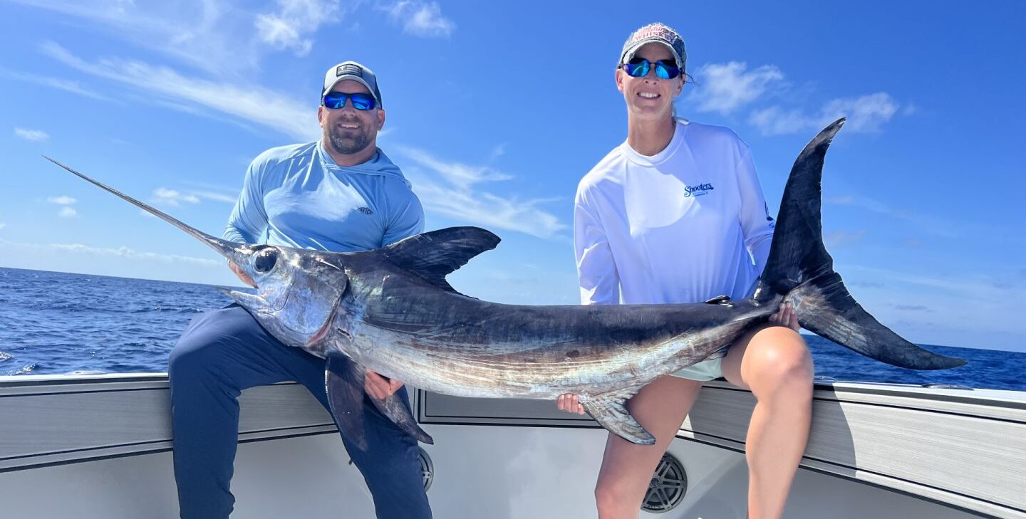 Daytime swordfishing is the hottest fishery in South Florida. This technique, originally pioneered in South Florida, involves the use of heavy-duty electric reels and up to 15 lbs of weight to fish baits at depths of 1600′-1800′. Swordfish are powerful, relentless predators that fight to the death and grow to sizes over 1000 lbs. Unlike kitefishing in South Florida — crews fishing for swordfish during the day aim to catch one to three fish over the course of the day. The average swordfish caught in Florida waters during the daytime ranges from 100-200 lbs with a few weighting well over 350 lbs.